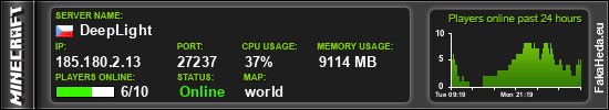 | DeepLight | 0 | 12 | public | 1.21.5 | 185.180.2.13:27237 | on |