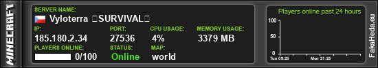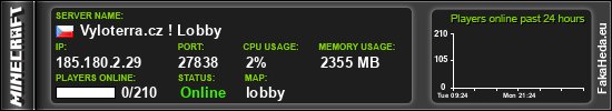 | Vyloterra ! Lobby | 0 | 210 | public | 1.21.10 | 185.180.2.29:27838 | on |
