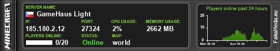 | GameHaus Light | 0 | 20 | public | 1.21.11 | 185.180.2.12:27324 | on |