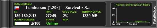 | Luminar.eu [1.20+] Survival + Slimefun! | 5 | 100 | bungee | 5300 | 185.180.2.13:27245 | on |