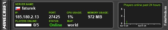 | faturek | 0 | 5 | public | 1.21.11 | 185.180.2.13:27425 | on |