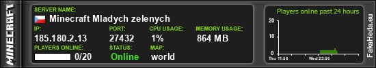 | Minecraft Mladych zelenych | 0 | 20 | public | 1.21.11 | 185.180.2.13:27432 | on |