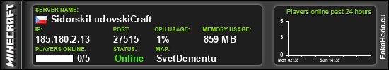 | SidorskiLudovskiCraft | 0 | 5 | white list | 1.21.11 | 185.180.2.13:27515 | on |