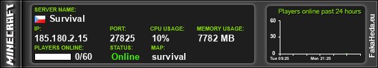 | Survival | 5 | 60 | public | 1.21.10 | 185.180.2.15:27825 | on |