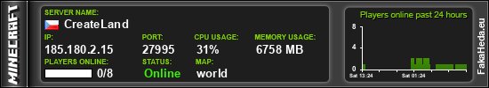 | CreateLand | 0 | 8 | white list | 1.20.1 | 185.180.2.15:27995 | on |