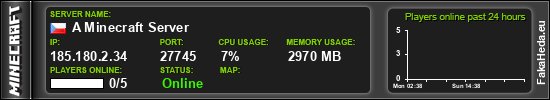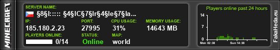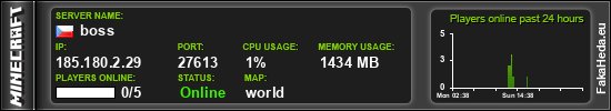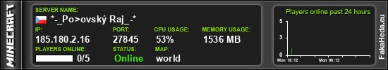 Při pronájmu herního serveru u nás získáte také možnost použít unikátní obrázkový status Vašeho serveru. Jako první CZ/SK hosting nabízející Minecraft servery máme SMS platební systém. Tuto jednoduchou platební metodu můžete použít jako příspěvkový/VIP platební kanál.