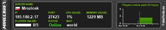| Mrozicek | 1 | 5 | public | 1.21.11 | 185.180.2.17:27423 | on |