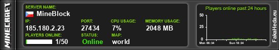| MineBlock | 0 | 50 | public | 1.21.11 | 185.180.2.23:27434 | on |