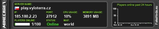 | FajnCraft.cz | Survival | Semi-Vanilla | 0 | 40 | public | 1.21.8 | 185.180.2.48:27725 | on |