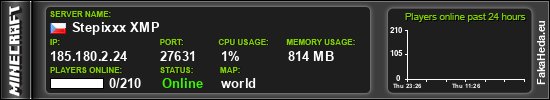 Stepixxx XMP | 0 | 210 | public | 1.21.8 | 185.180.2.24:27631 | on |