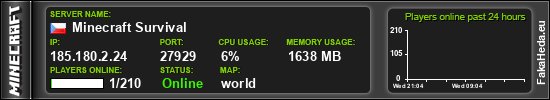 | Minecraft Survival | 1 | 210 | public | 1.21.11 | 185.180.2.24:27929 | on |