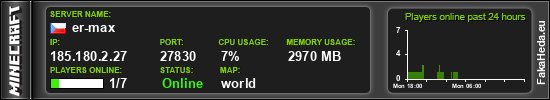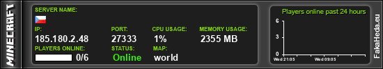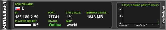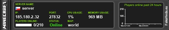 | AxenCraft | 0 | 210 | white list | 1.21.10 | 185.180.2.31:27350 | on |