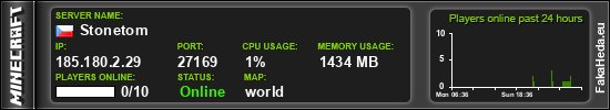 | Stonetom | 0 | 10 | public | 1.21.11 | 185.180.2.29:27169 | on |