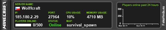 | Wolffcraft | 0 | 500 | public | 1.21.10 | 185.180.2.29:27964 | on |