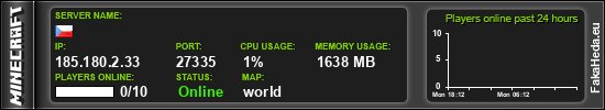U RAKLORA | 0 | 210 | public | 1.16.5 | 185.180.2.28:27242 | on |