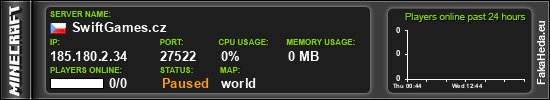 | SwiftGames.cz | 0 | 0 | public | 1.21.11 | 185.180.2.34:27522 | off |