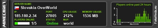 | Slovakia OverWorld | 1 | 5 | white list | 26.1 | 185.180.2.34:27805 | on |