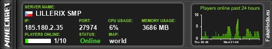 | LILLERIX SMP | 2 | 10 | public | 1.21.8 | 185.180.2.35:27974 | on |
