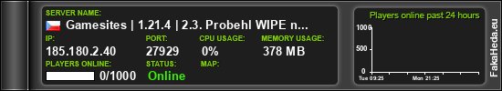 | Gamesites | 1.21.10 | 24.10. Probehl WIPE na 1.21.10!> Survival | Skyblock < | 5 | 1000 | bungee | 1.8.x-1.21.x | 185.180.2.40:27929 | on |