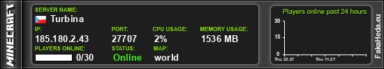 Turbina | 0 | 30 | public | 1.21.8 | 185.180.2.43:27707 | on |