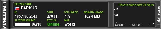 | PARKUR | 0 | 210 | public | 1.21.10 | 185.180.2.43:27831 | on |