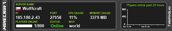 | Wolffcraft | 0 | 800 | public | 1.21.10 | 185.180.2.43:27958 | on |