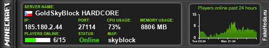 | GoldSkyBlock HARDCORE | 8 | 15 | public | 1.21.11 | 185.180.2.44:27114 | on |