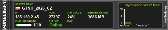 | GTNH_2026_CZ | 1 | 10 | public | 1.7.10 | 185.180.2.45:27297 | on |