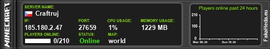 | Craftruj | 0 | 210 | white list | 1.21.11 | 185.180.2.47:27659 | on |