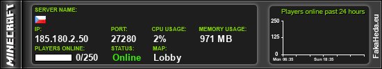 | 0 | 250 | public | 1.8.8 | 185.180.2.50:27280 | on | |